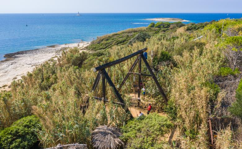 Alla fine della passeggiata vale la pena visitare il Safari Bar – un bar unico nel suo genere, costruito interamente con materiali naturali reperiti in loco e circondato da numerose attrezzature da gioco per bambini. I vostri figli rimarranno sicuramente impressionati dalle interessanti strutture gioco realizzate con materiali naturali e riciclati. Questa bellissima oasi, come anche gli altri bar al mare aperti durante i mesi estivi, sono il luogo ideale per godere ulteriormente delle bellezze di Kamenjak.